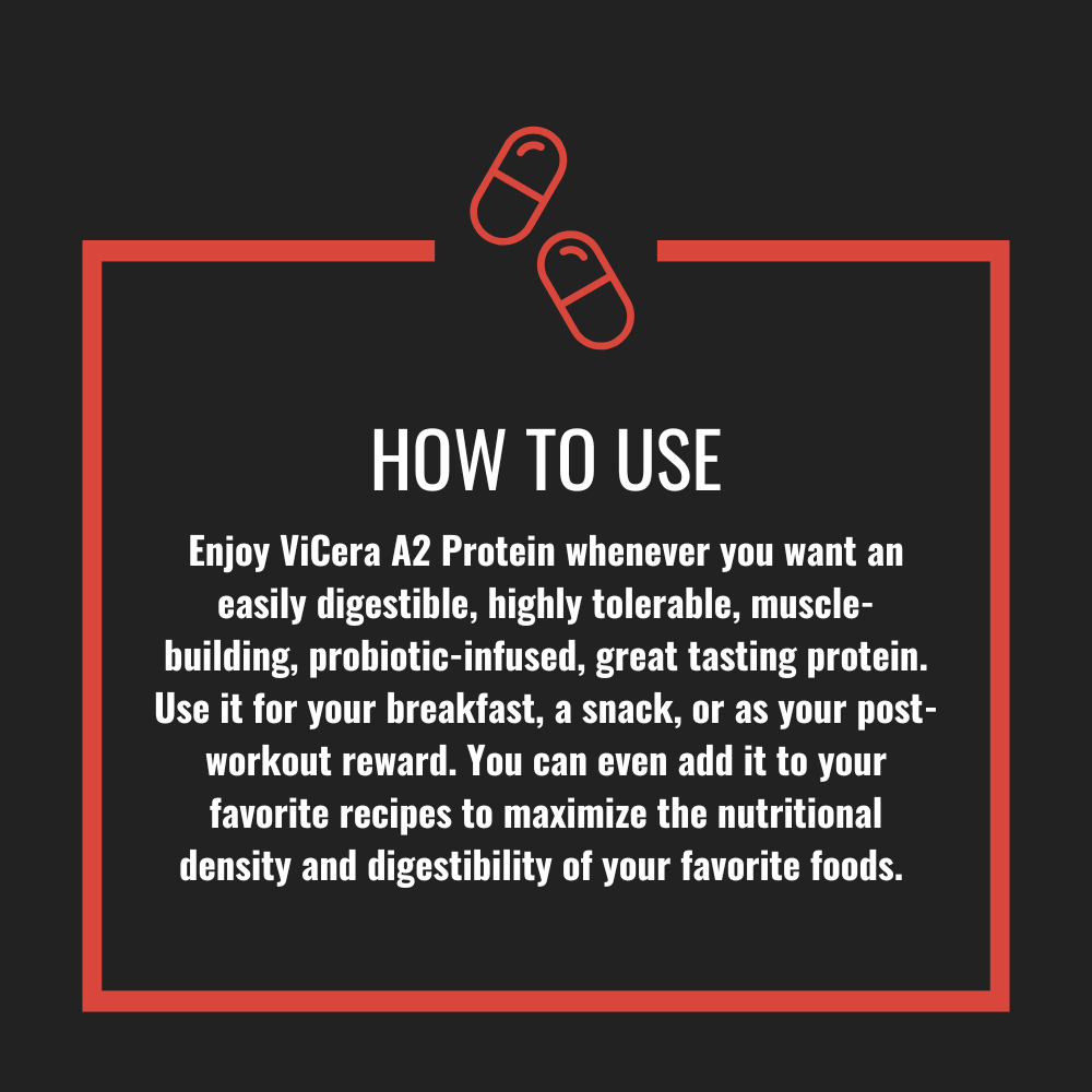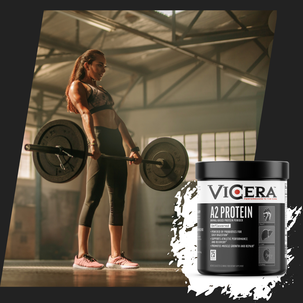 ViCera A2 Protein is the FIRST-AND-ONLY superfood protein powder on the planet powered by organic, regenerative A2/A2 dairy protein, Regenerative Organic Certified® organs, and Amplified Probiotics. Plus, there is none of the highly problematic A1 Beta Casein that is found in typical dairy-based proteins. Why are these so important?
