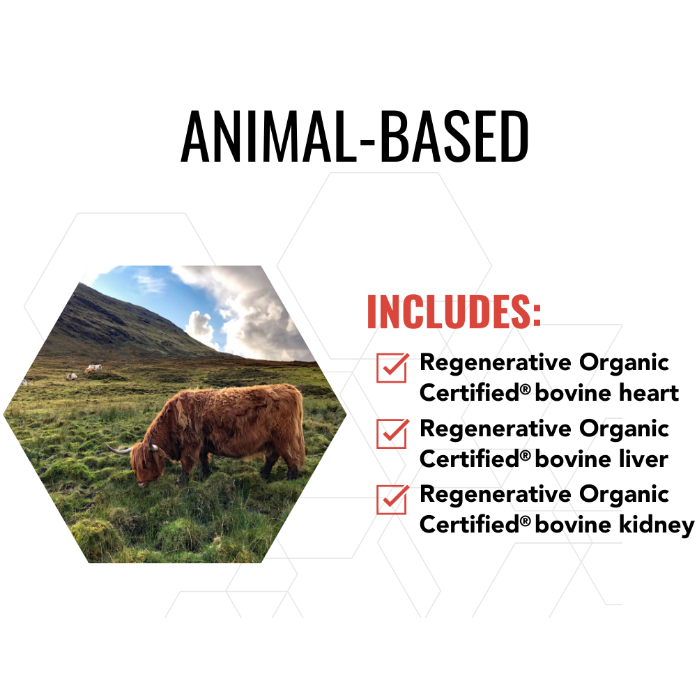 - A2 Protein from Regenerative Organic Certified® beef heart, liver, and kidney