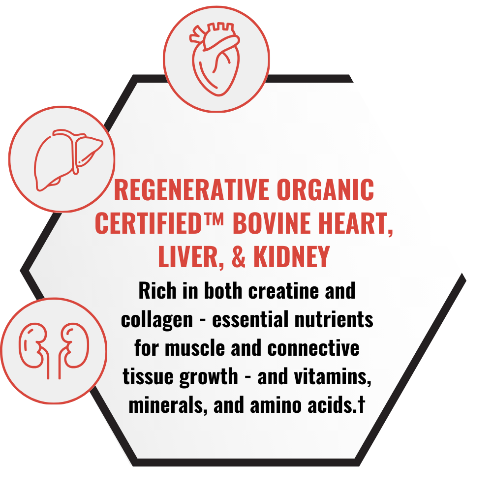 - A2 Protein from Regenerative Organic Certified® beef heart, liver, and kidney