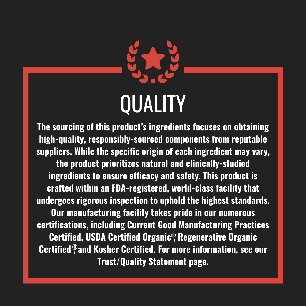 Regenerative Organic Certified® Bovine Heart: Packed with vitamins, minerals, creatine, and collagen, offering powerhouse nutrition for health and performance.† Now you can have access to this historically-prized superfood every day. And you can be confident knowing that it represents the highest standards ever for any animal ingredient because this superfood organ is USDA Certified Organic®, Regenerative Organic Certified®, Non-GMO, 100% grass-fed and grass-finished, and adheres to the highest standards of animal welfare based on the Global Animal Partnership scale.