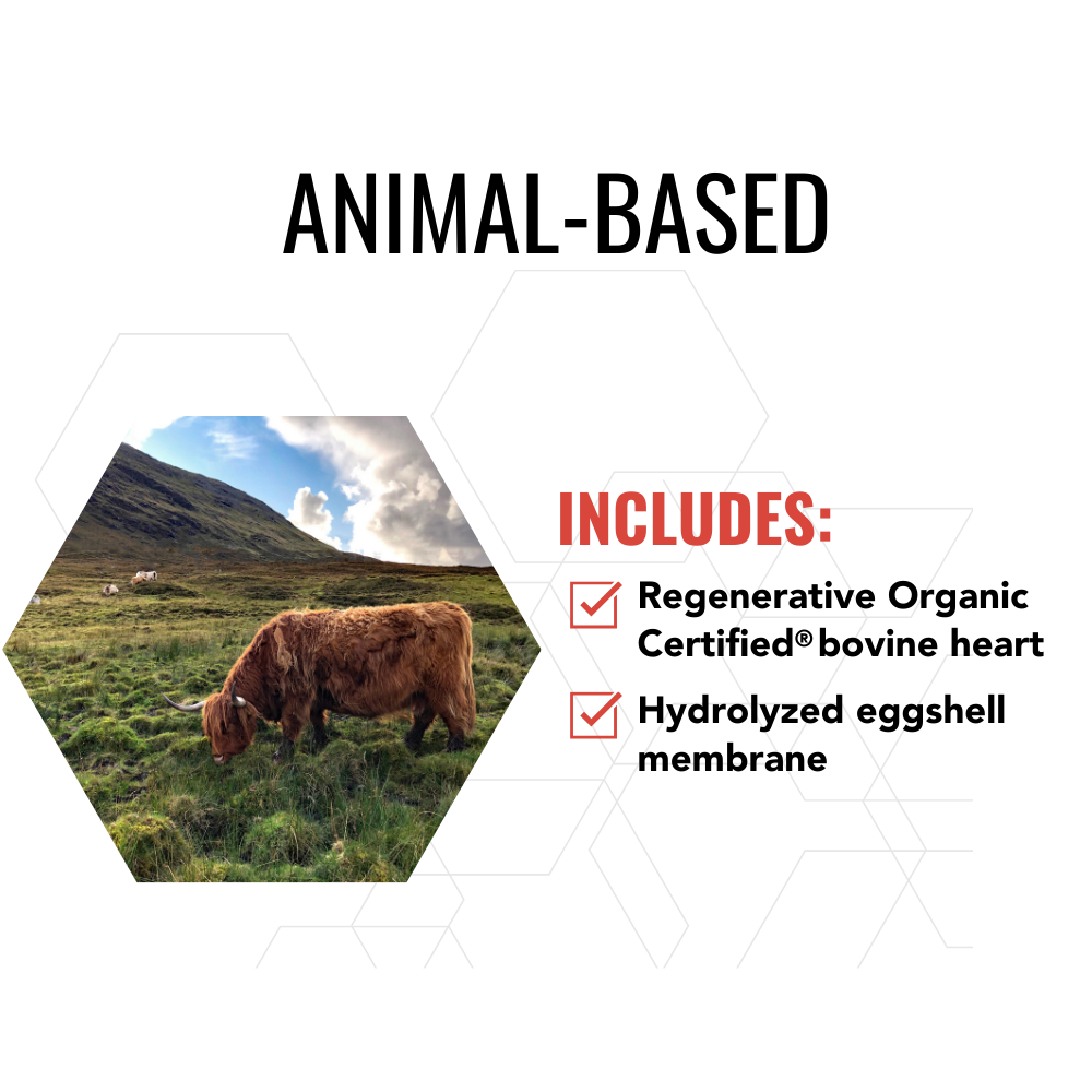 Combines creatine monohydrate, collagen, and Regenerative Organic Certified® grass-fed bovine heart.