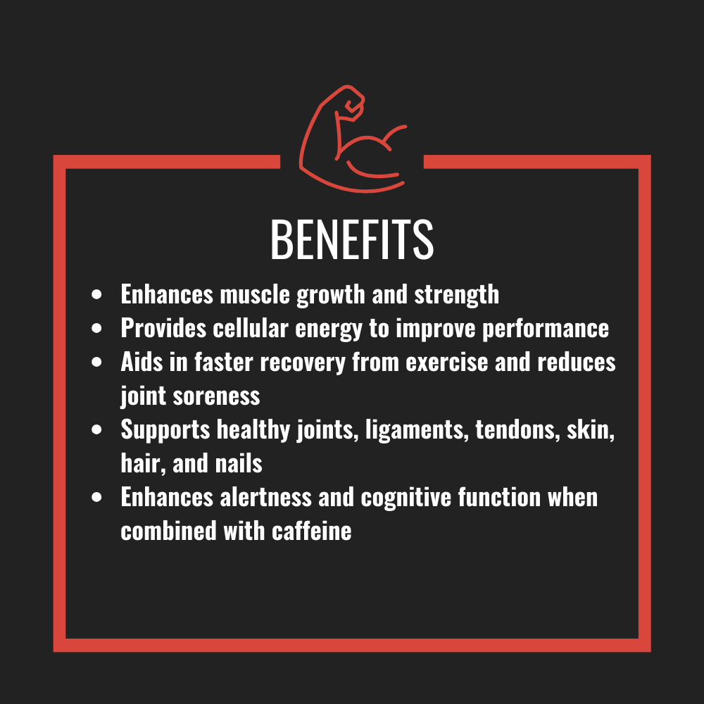 - Synergistic Effects: The combination of creatine and collagen provides enhanced benefits, hence referred to as “Creatine x Collagen x Caffeine" due to the exponential synergy.
