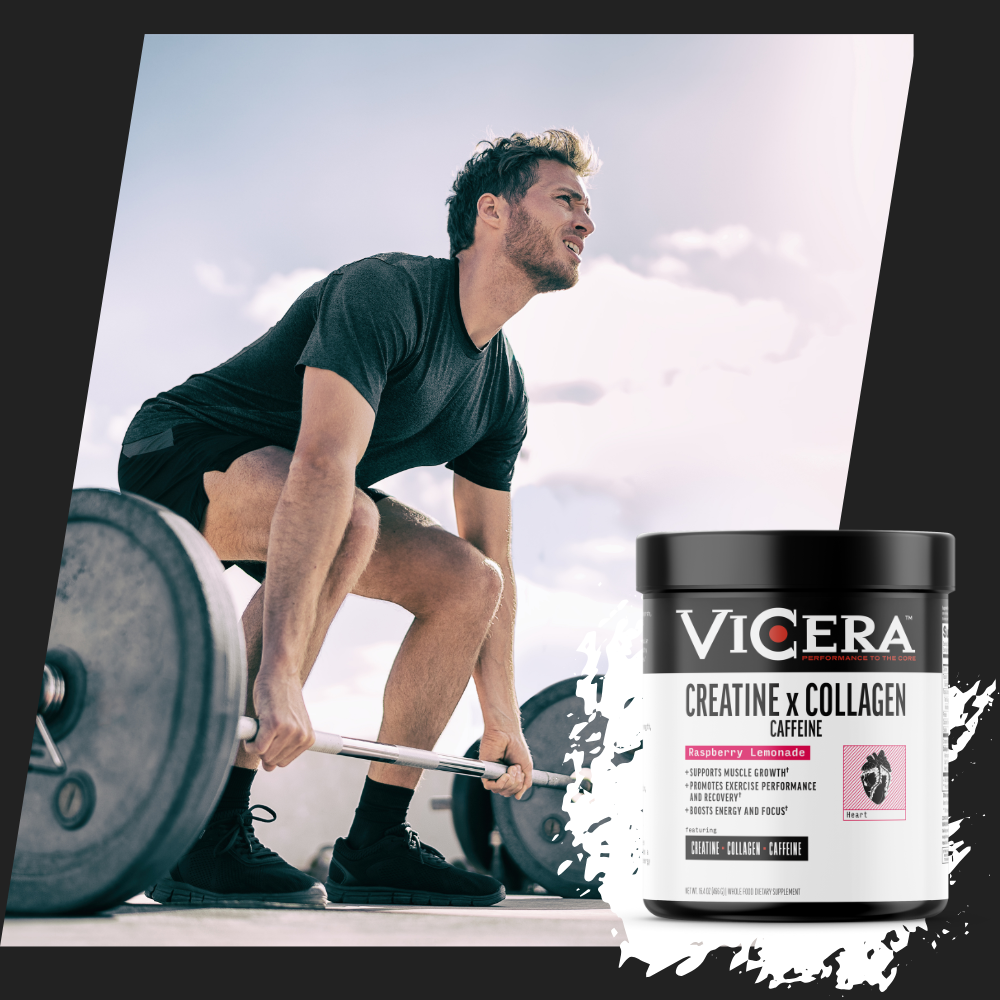 ViCera Creatine x Collagen x Caffeine powder is a REVOLUTIONARY formulation that combines the power and potency of creatine monohydrate, hydrolyzed eggshell membrane collagen, and Regenerative Organic Certified® grass-fed bovine heart (a natural source of creatine, collagen, and more), organic caffeine plus antioxidants from coffee cherry. It is a potent combo that provides energy, supports muscular strength and endurance, improves exercise recovery, promotes healthy joints, ligaments and tendons, and supports a healthy inflammation response.†